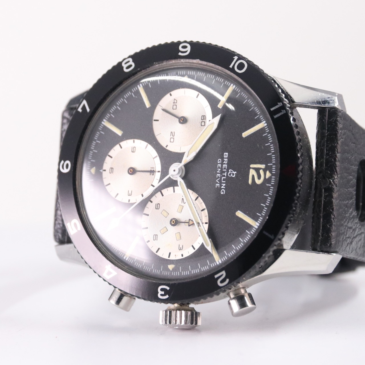 MOVEMENT: Legendary Venus 178 chronograph movement Heavily modified to accommodate the 15 minute aperture minute counter is looking bright and working well with all correct Breitling nomenclature of the era and shock protection. Watch is keeping good time with a strong power reserve and all chronograph functions are working properly and returning to zero. This is guaranteed to be the case at the time of shipment.