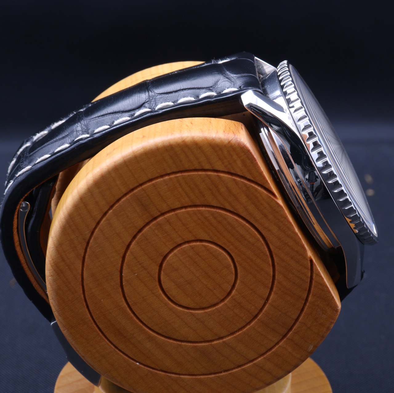 Watch is absolutely immaculate with a recent service done by Breitling in Japan , service included a brand new Croc strap . Watch comes with all papers , incl service papers , passports , limited edition certificate and a unique wooden watch stand