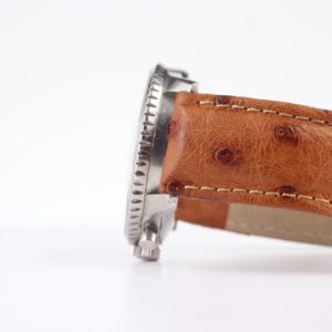 CROWN & PUSHERS: Signed Breitling crown looks very clean and winds and pulls out to the time-setting position as it should. It sits tightly against the case. The two pusher caps are likewise in Excellent shape and both chrono pushers work as they should and also nice and crisply.
