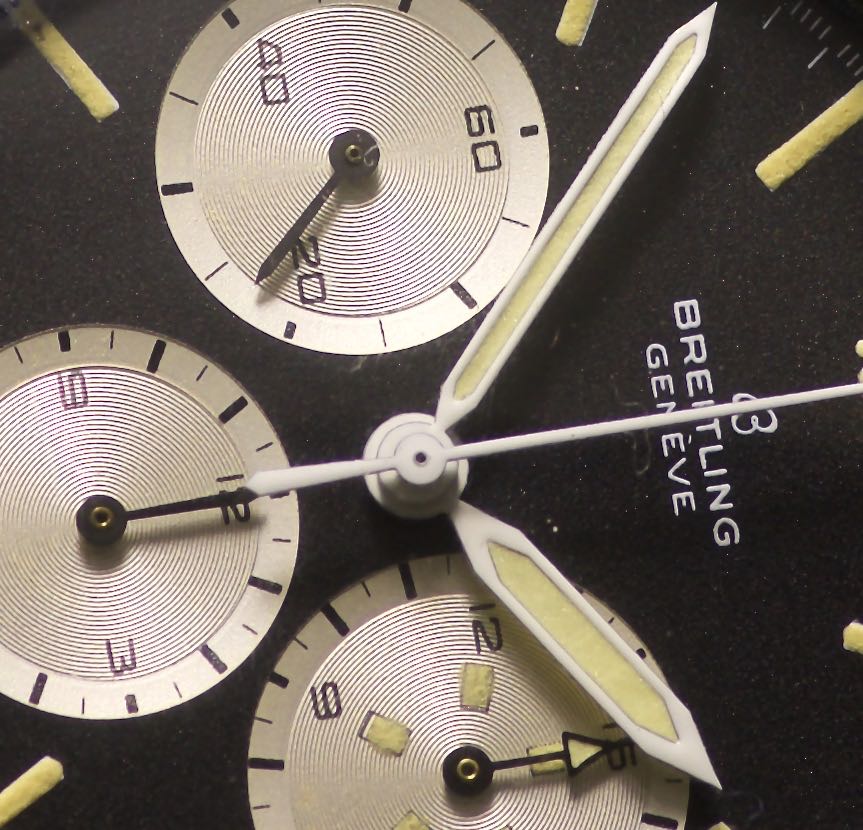MOVEMENT: Legendary Venus 178 chronograph movement Heavily modified to accommodate the 15 minute aperture minute counter is looking bright and working well with all correct Breitling nomenclature of the era and shock protection. Watch is keeping good time with a strong power reserve and all chronograph functions are working properly and returning to zero. This is guaranteed to be the case at the time of shipment.