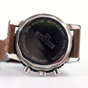 CASE & BACK: This watchmeasures a large 40 x 48mm not including crown and is 12.5mm to the top of the flush fit crystal. The heavy all-steel case does not appear to have ever been polished and still shows its original bevels and polished finish. There are very few superficial scratches and some nicks commensurate with a very lightly worn 48-year-old tool watch — Fantastic vintage condition overall. The outer part of the screwed steel back has some very light and superficial scratches but shows its original Breitling nomenclature of the period including the 1286446 serial number on the outside, which indicates a 1969 production, and correct 2010 reference–also Excellent original cosmetic condition. The inner caseback shows no corrosion and has the correct internal Breitling engraving of the era.