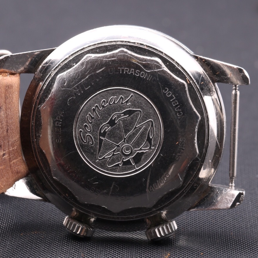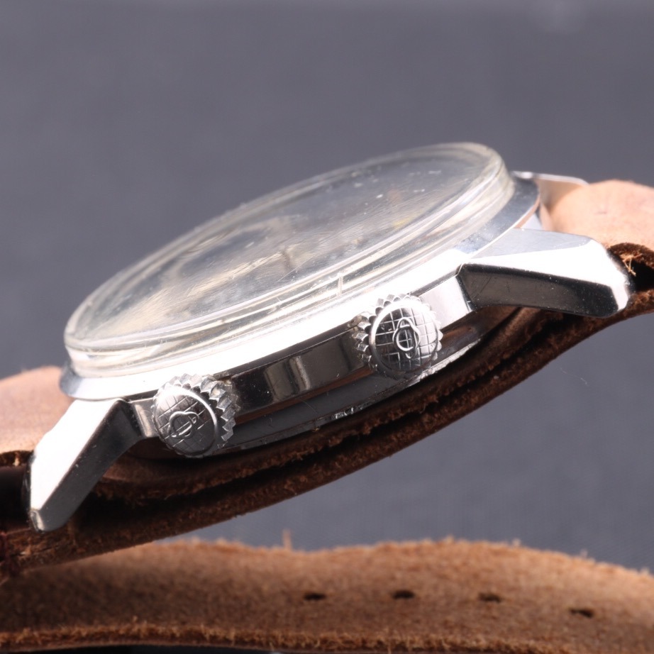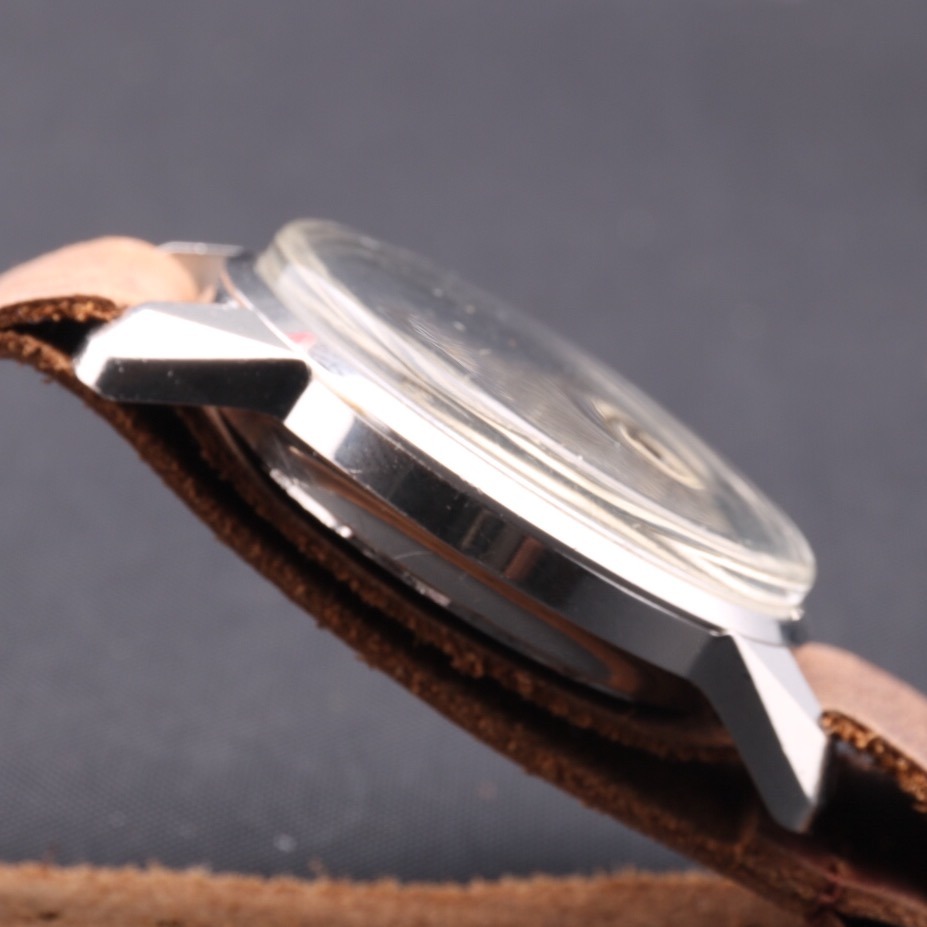 CASE & BACK: This Vintage Enicar Super Jet measures a large 40 x 49mm not including crowns and is 14mm to the top of the flush fit crystal. Very good condition overall and it looks lightly worn. The outer part of the screwed steel back has some very light scratches but shows its original Enicar nomenclature of the period